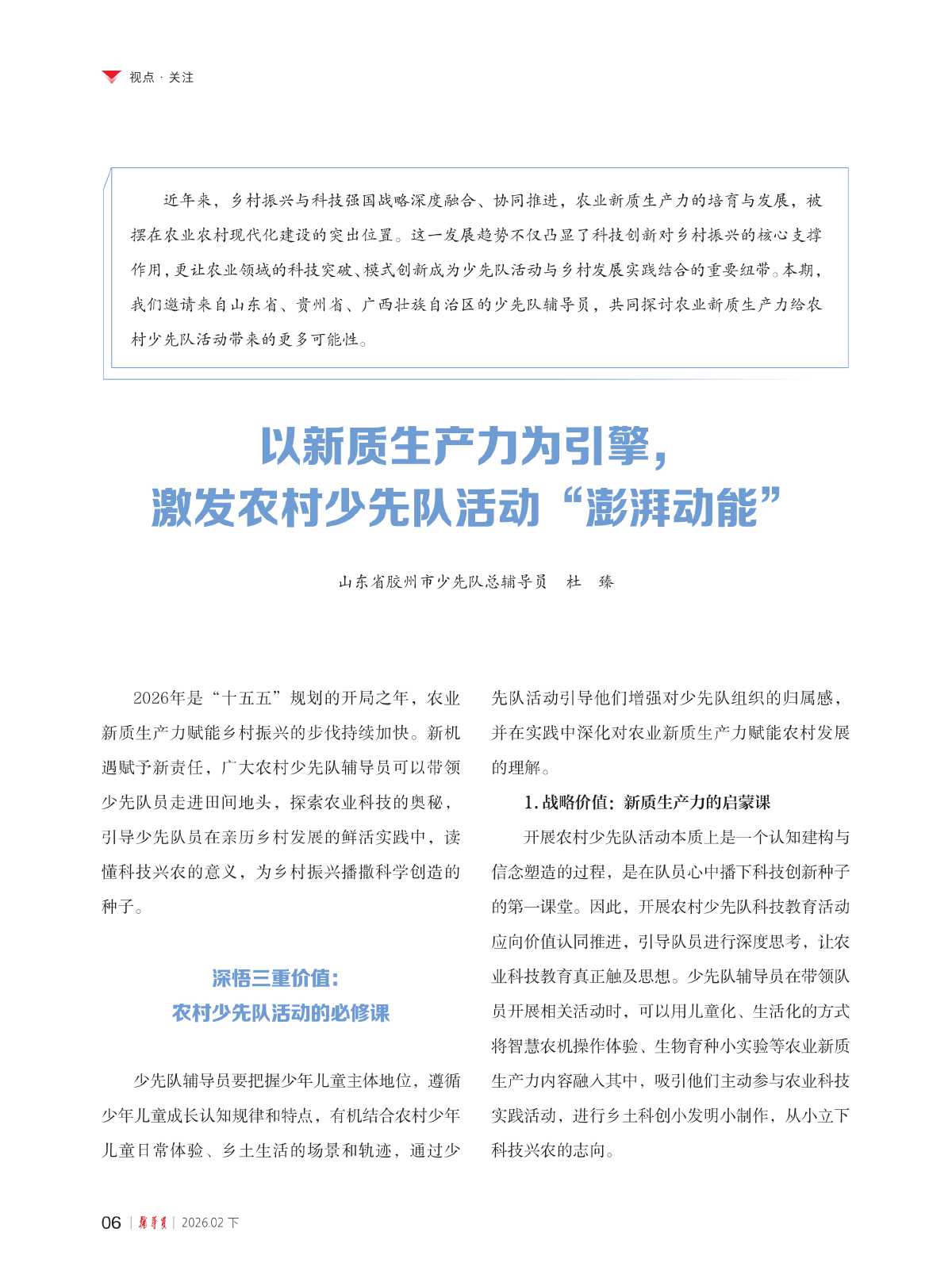 以新质生产力为引擎,激发农村少先队活动“澎湃动能”