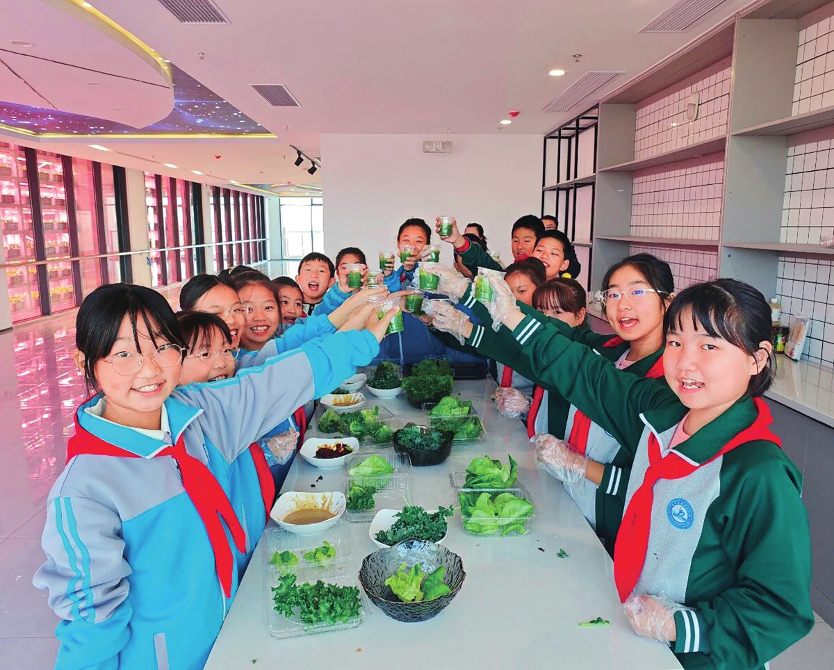 “‘春种一粒粟,秋收万颗子。’我的爷爷奶奶常说,以前种蔬菜要靠阳光晒、雨水浇,还得看老天爷的‘脸色’。”山东省青岛市胶州市李哥庄航文小学的队员小伟说,“现在有一种神奇的农业新力量,不用泥土、不靠天气,就能让蔬菜长得又快又好,而这种神奇的力量就是新质生产力!”为引导队员们触摸农业的“未来模样”,感受新质生产力改变农业的力量,胶州市李哥庄航文小学少工委带领队员们走进家乡企业——上合美谷植物工厂,开展了“寻访科技兴农”的活动。