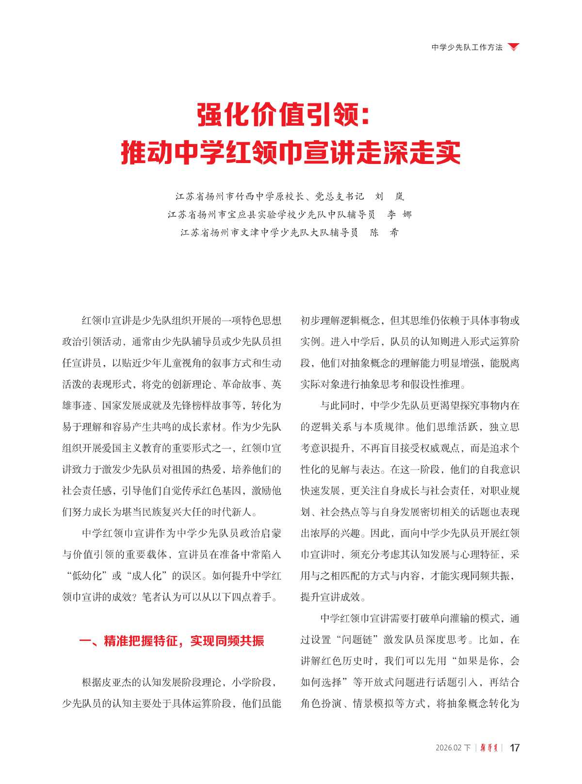 强化价值引领:推动中学红领巾宣讲走深走实