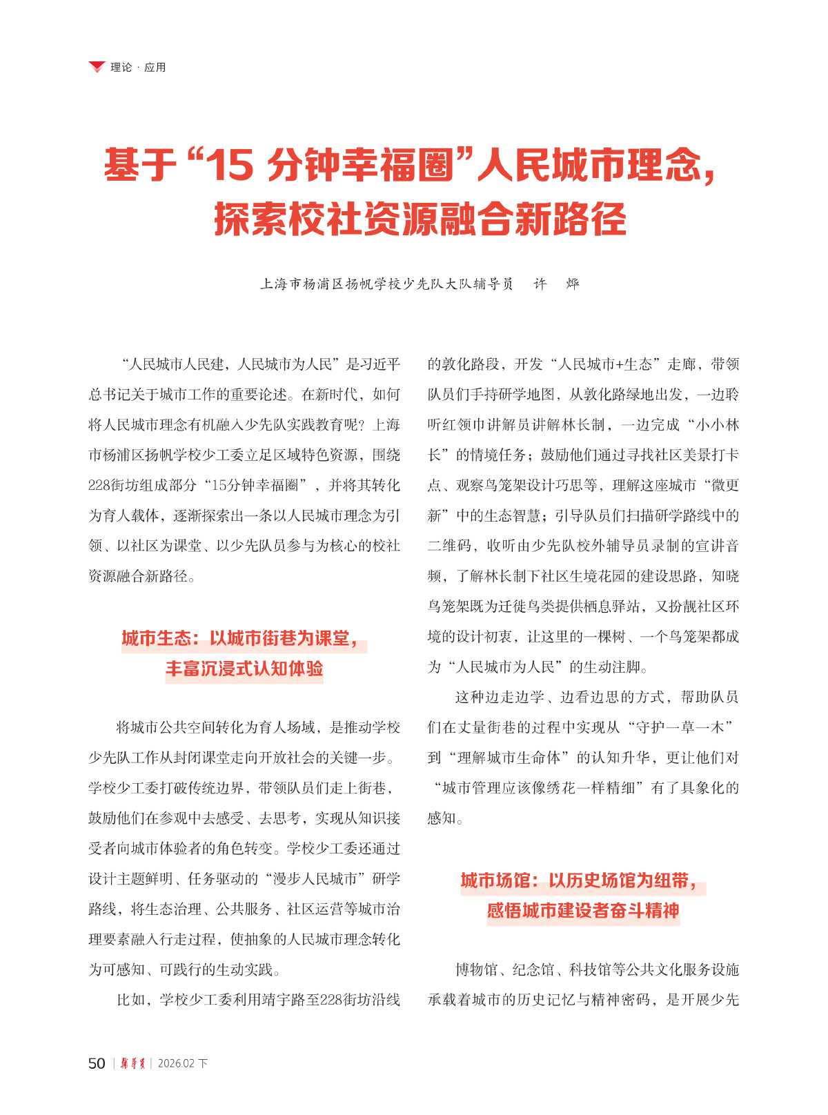 基于“15分钟幸福圈”人民城市理念,探索校社资源融合新路径