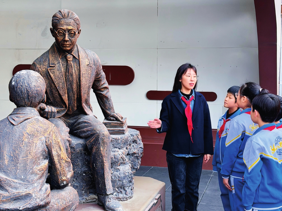 在清明节、烈士纪念日,我不仅带领队员们参观校史馆,还鼓励他们与赵天麟校长“对话”。站在赵天麟纪念雕像前,我引导队员们设想:如果赵校长就在我们中间,他会问我们什么?你们想告诉他什么?以问题为切入点,启发队员们对赵天麟校长爱国精神的深入思考。